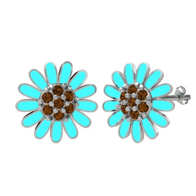 Dumanlı kuvars 925 ayar gümüş küpe (Turkuaz mineli)