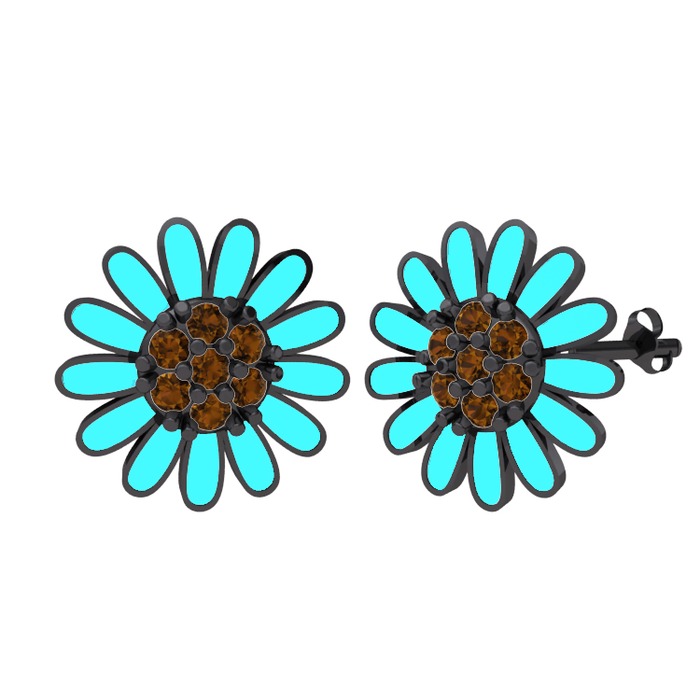 Dumanlı kuvars 925 ayar siyah rodyum kaplama gümüş küpe (Turkuaz mineli)