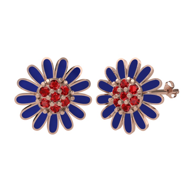 Garnet 14 ayar rose altın küpe (Lacivert mineli)