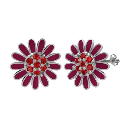 Garnet 8 ayar beyaz altın küpe (Bordo kırmızı mineli)