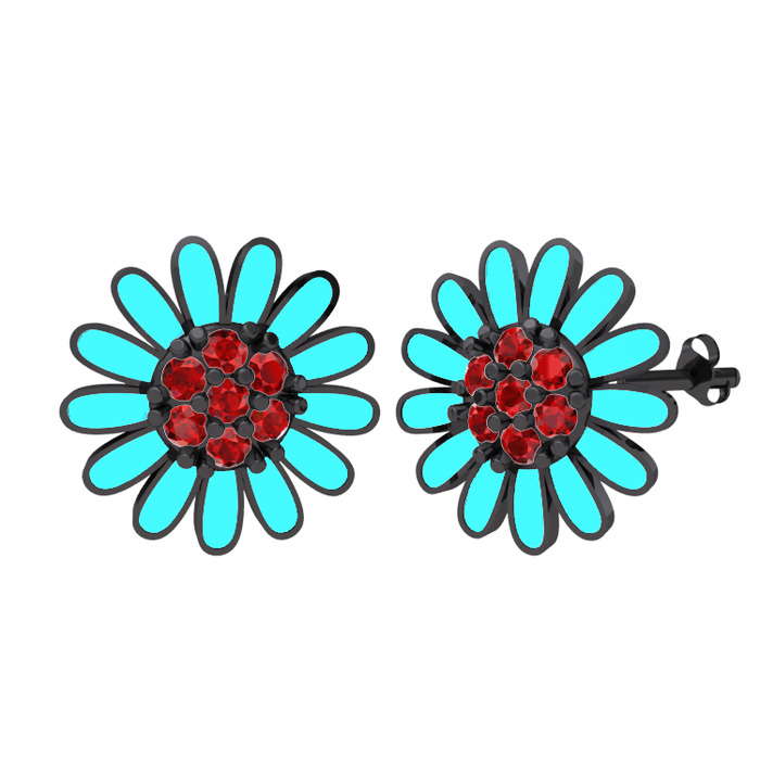 Garnet 925 ayar siyah rodyum kaplama gümüş küpe (Turkuaz mineli)