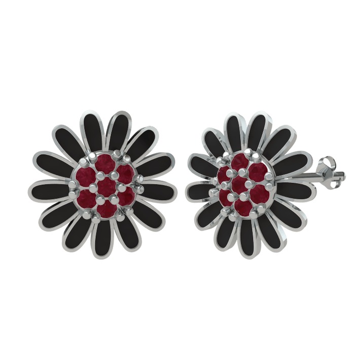 Kök yakut 14 ayar beyaz altın küpe (Siyah mineli)