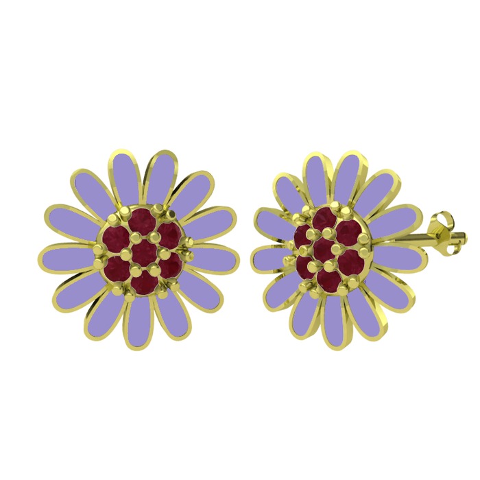 Kök yakut 18 ayar altın küpe (Menekşe mineli)