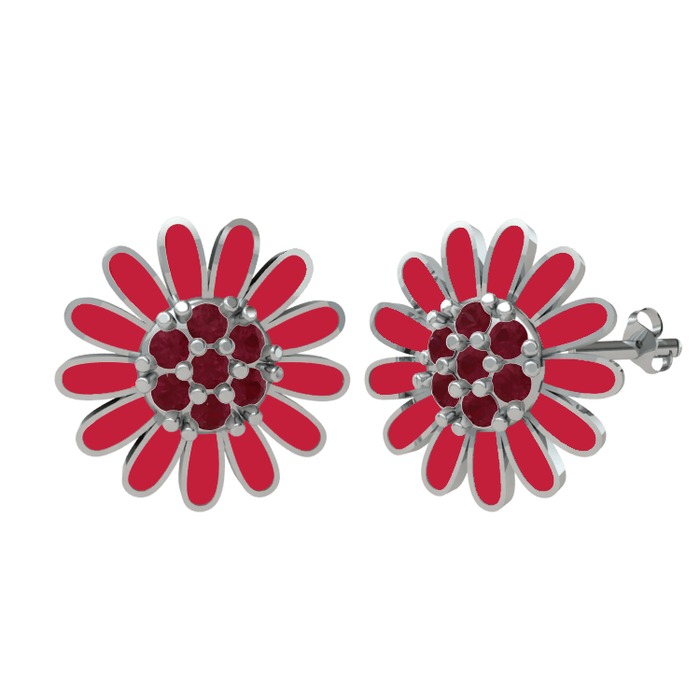Kök yakut 18 ayar beyaz altın küpe (Kırmızı mineli)