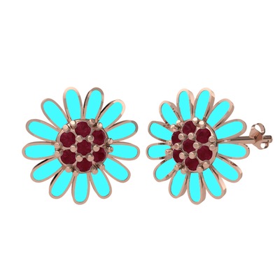 Kök yakut 18 ayar rose altın küpe (Turkuaz mineli)