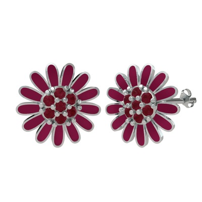 Kök yakut 8 ayar beyaz altın küpe (Bordo kırmızı mineli)