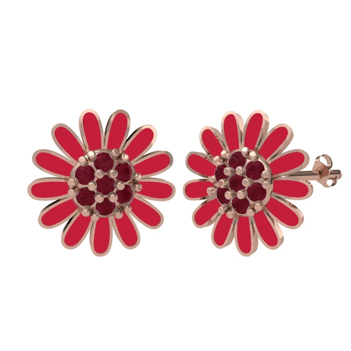 Kök yakut 8 ayar rose altın küpe (Kırmızı mineli)