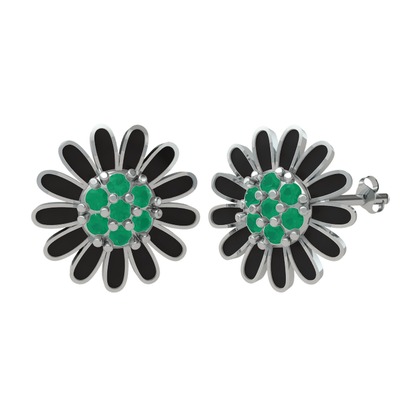 Kök zümrüt 18 ayar beyaz altın küpe (Siyah mineli)