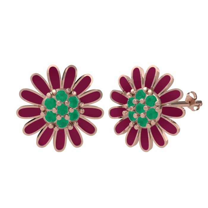 Kök zümrüt 18 ayar rose altın küpe (Bordo kırmızı mineli)
