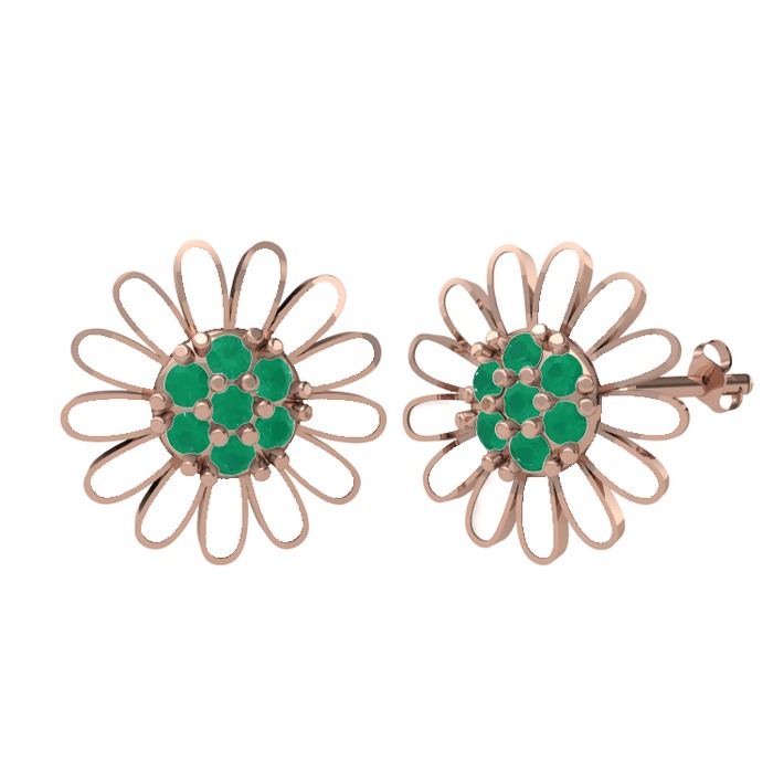 Kök zümrüt 8 ayar rose altın küpe (Beyaz mineli)