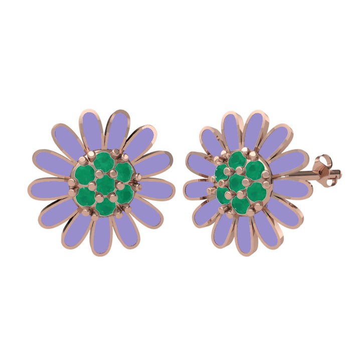 Kök zümrüt 925 ayar rose altın kaplama gümüş küpe (Menekşe mineli)