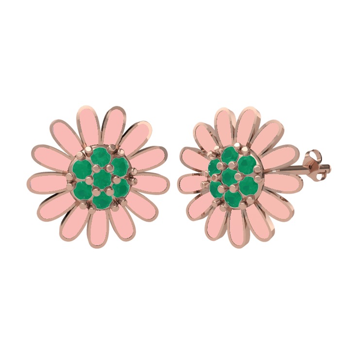 Kök zümrüt 925 ayar rose altın kaplama gümüş küpe (Pastel pembe mineli)