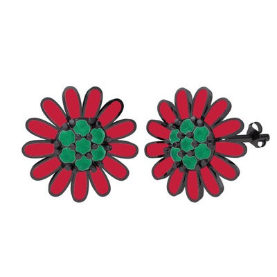 Kök zümrüt 925 ayar siyah rodyum kaplama gümüş küpe (Kırmızı mineli)
