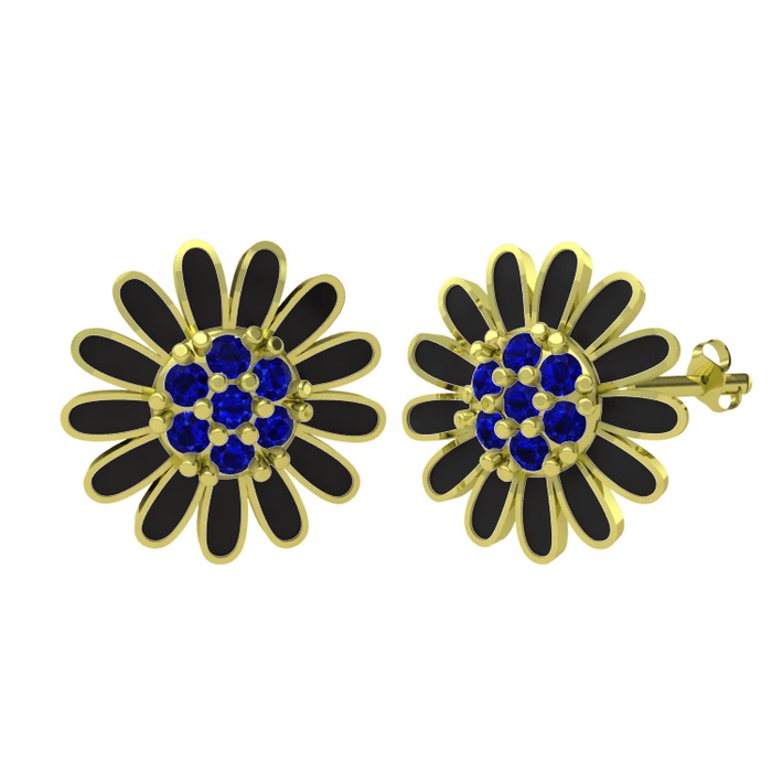 Lab safir 18 ayar altın küpe (Siyah mineli)