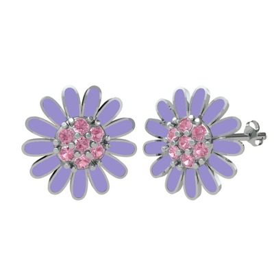 Pembe kuvars 14 ayar beyaz altın küpe (Menekşe mineli)