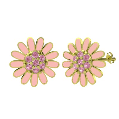 Pembe kuvars 18 ayar altın küpe (Pastel pembe mineli)