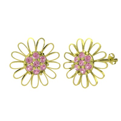 Pembe kuvars 8 ayar altın küpe (Beyaz mineli)