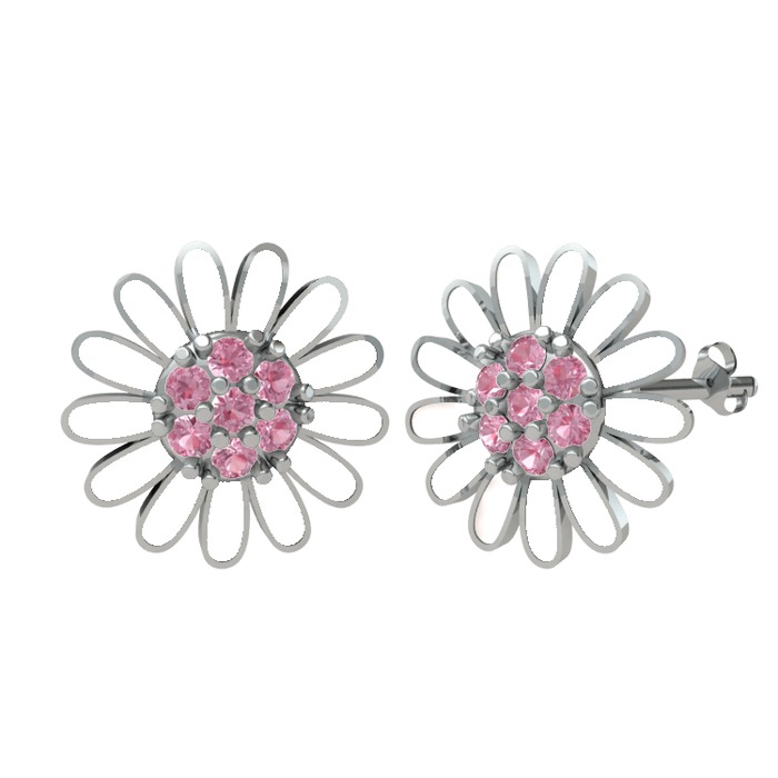Pembe kuvars 925 ayar gümüş küpe (Beyaz mineli)