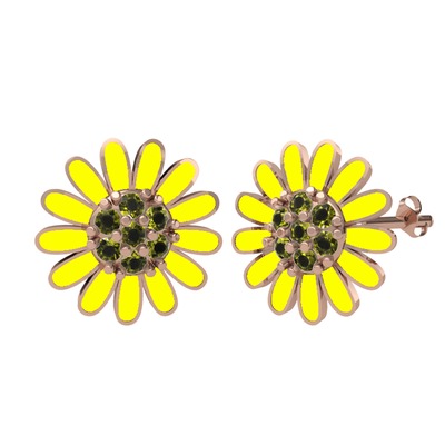 Peridot 925 ayar rose altın kaplama gümüş küpe (Sarı mineli)