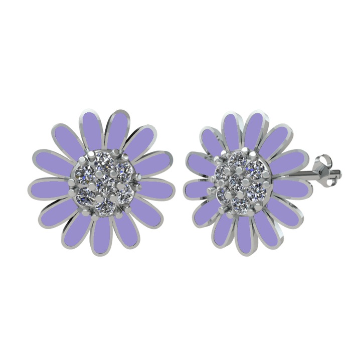 Pırlanta 14 ayar beyaz altın küpe (0.504 karat, menekşe mineli)