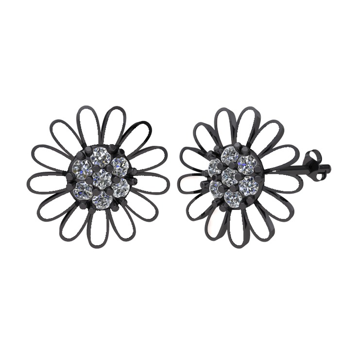 Pırlanta 925 ayar siyah rodyum kaplama gümüş küpe (0.504 karat, beyaz mineli)