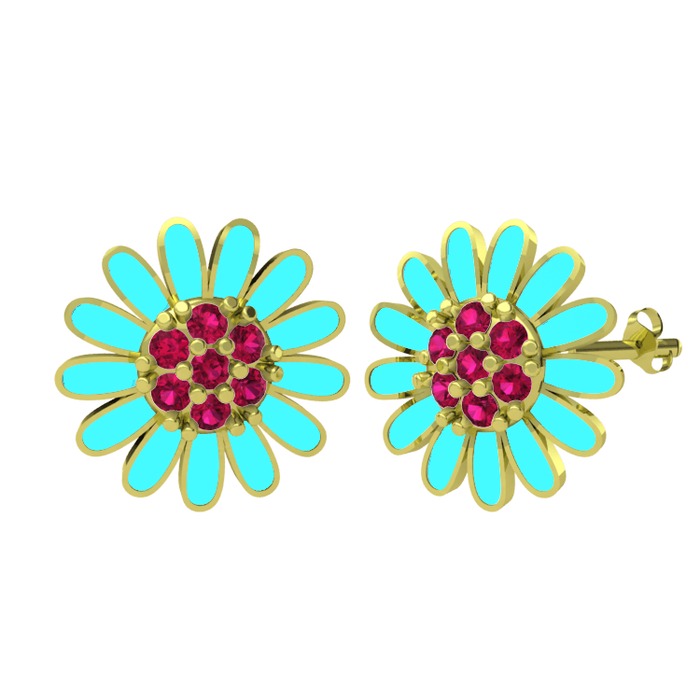 Rodolit garnet 14 ayar altın küpe (Turkuaz mineli)