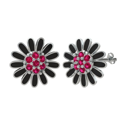 Rodolit garnet 18 ayar beyaz altın küpe (Siyah mineli)