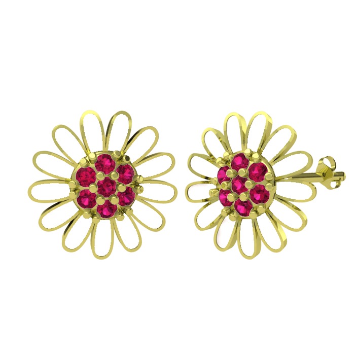 Rodolit garnet 8 ayar altın küpe (Beyaz mineli)