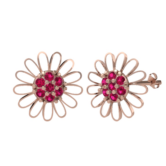 Rodolit garnet 8 ayar rose altın küpe (Beyaz mineli)
