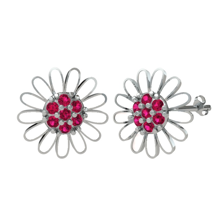 Rodolit garnet 925 ayar gümüş küpe (Beyaz mineli)