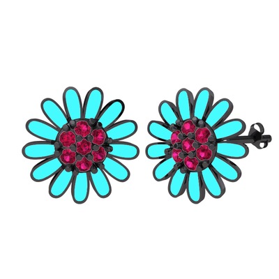 Rodolit garnet 925 ayar siyah rodyum kaplama gümüş küpe (Turkuaz mineli)