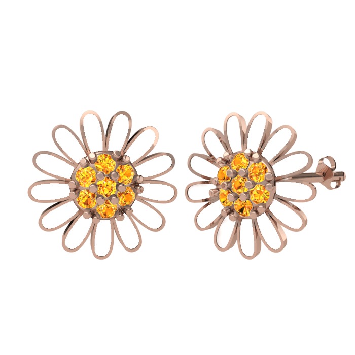 Sitrin 14 ayar rose altın küpe (Beyaz mineli)