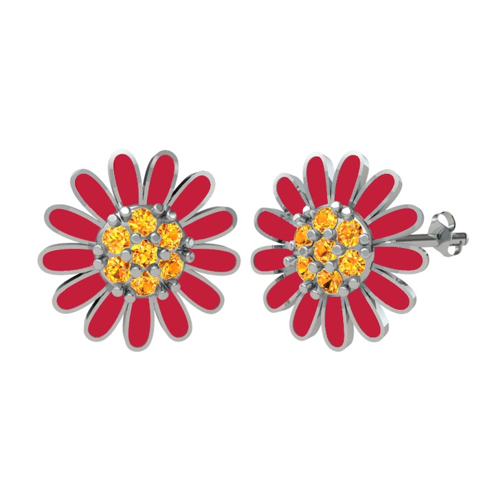 Sitrin 18 ayar beyaz altın küpe (Kırmızı mineli)