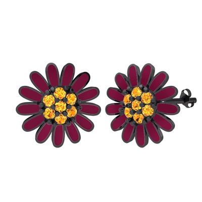 Sitrin 925 ayar siyah rodyum kaplama gümüş küpe (Bordo kırmızı mineli)