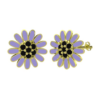Siyah zirkon 14 ayar altın küpe (Menekşe mineli)