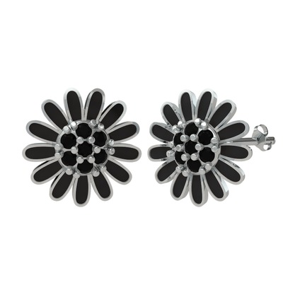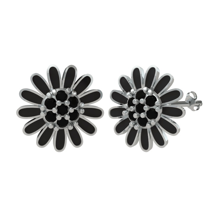 Siyah zirkon 14 ayar beyaz altın küpe (Siyah mineli)