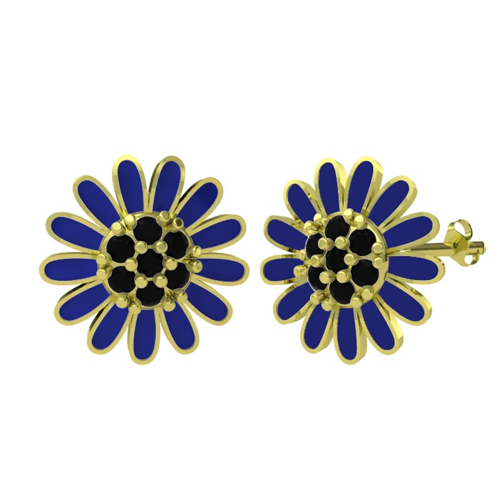 Siyah zirkon 18 ayar altın küpe (Lacivert mineli)