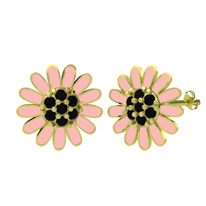 Siyah zirkon 18 ayar altın küpe (Pastel pembe mineli)