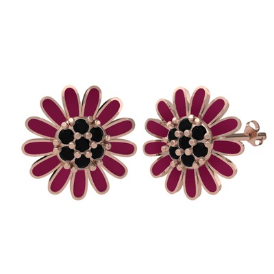 Siyah zirkon 8 ayar rose altın küpe (Bordo kırmızı mineli)