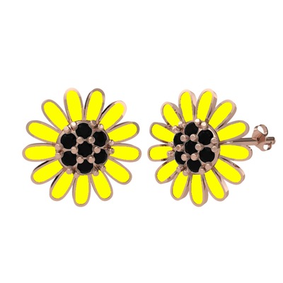 Siyah zirkon 8 ayar rose altın küpe (Sarı mineli)