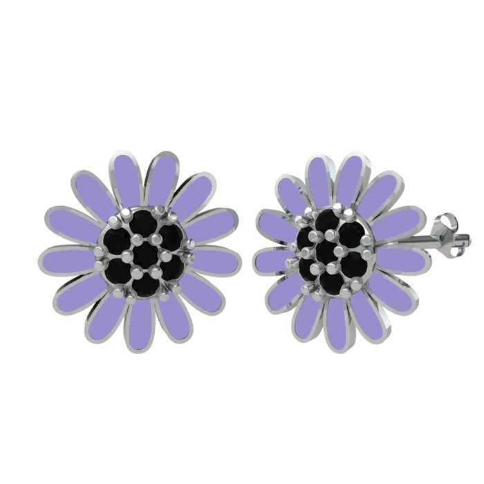 Siyah zirkon 925 ayar gümüş küpe (Menekşe mineli)