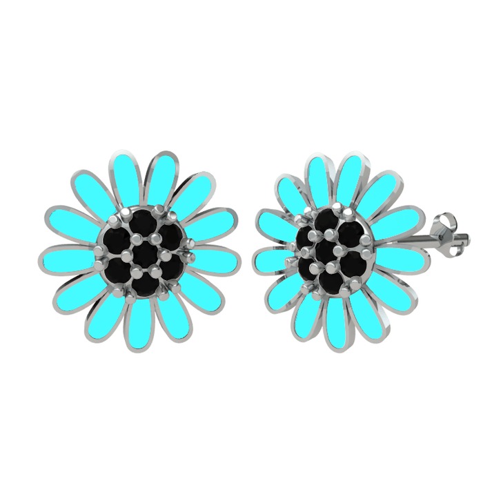 Siyah zirkon 925 ayar gümüş küpe (Turkuaz mineli)