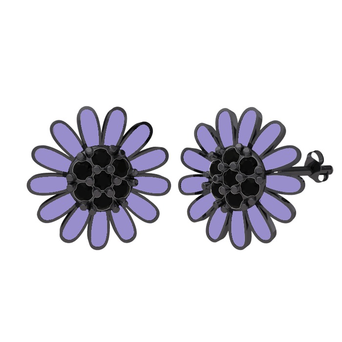 Siyah zirkon 925 ayar siyah rodyum kaplama gümüş küpe (Menekşe mineli)