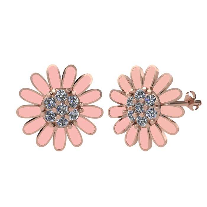 Swarovski 18 ayar rose altın küpe (Pastel pembe mineli)
