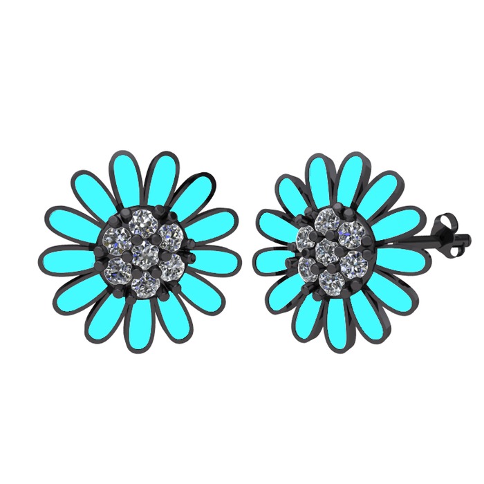Swarovski 925 ayar siyah rodyum kaplama gümüş küpe (Turkuaz mineli)