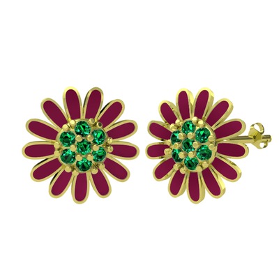 Yeşil kuvars 14 ayar altın küpe (Bordo kırmızı mineli)