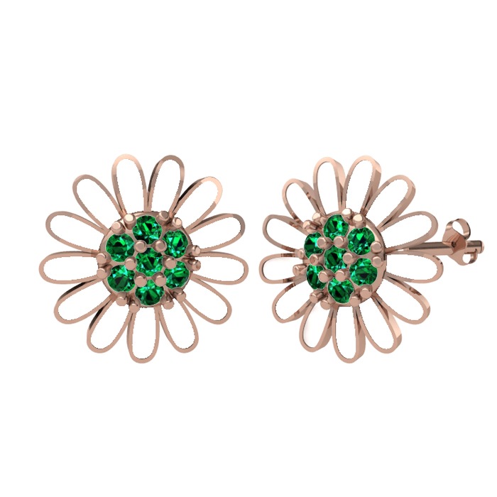Yeşil kuvars 18 ayar rose altın küpe (Beyaz mineli)