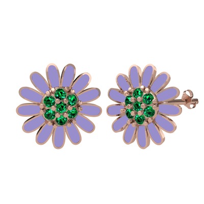 Yeşil kuvars 8 ayar rose altın küpe (Menekşe mineli)