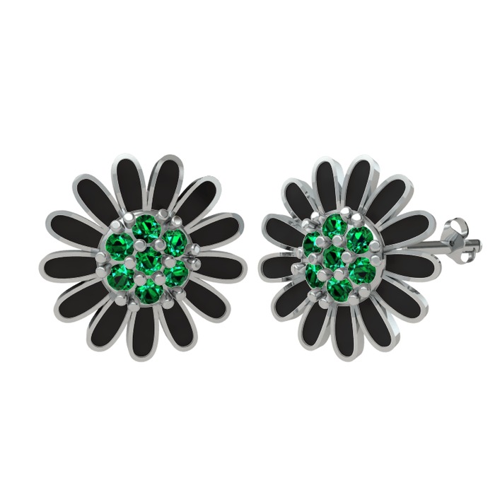 Yeşil kuvars 925 ayar gümüş küpe (Siyah mineli)
