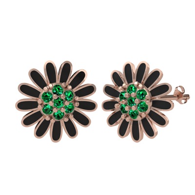 Yeşil kuvars 925 ayar rose altın kaplama gümüş küpe (Siyah mineli)